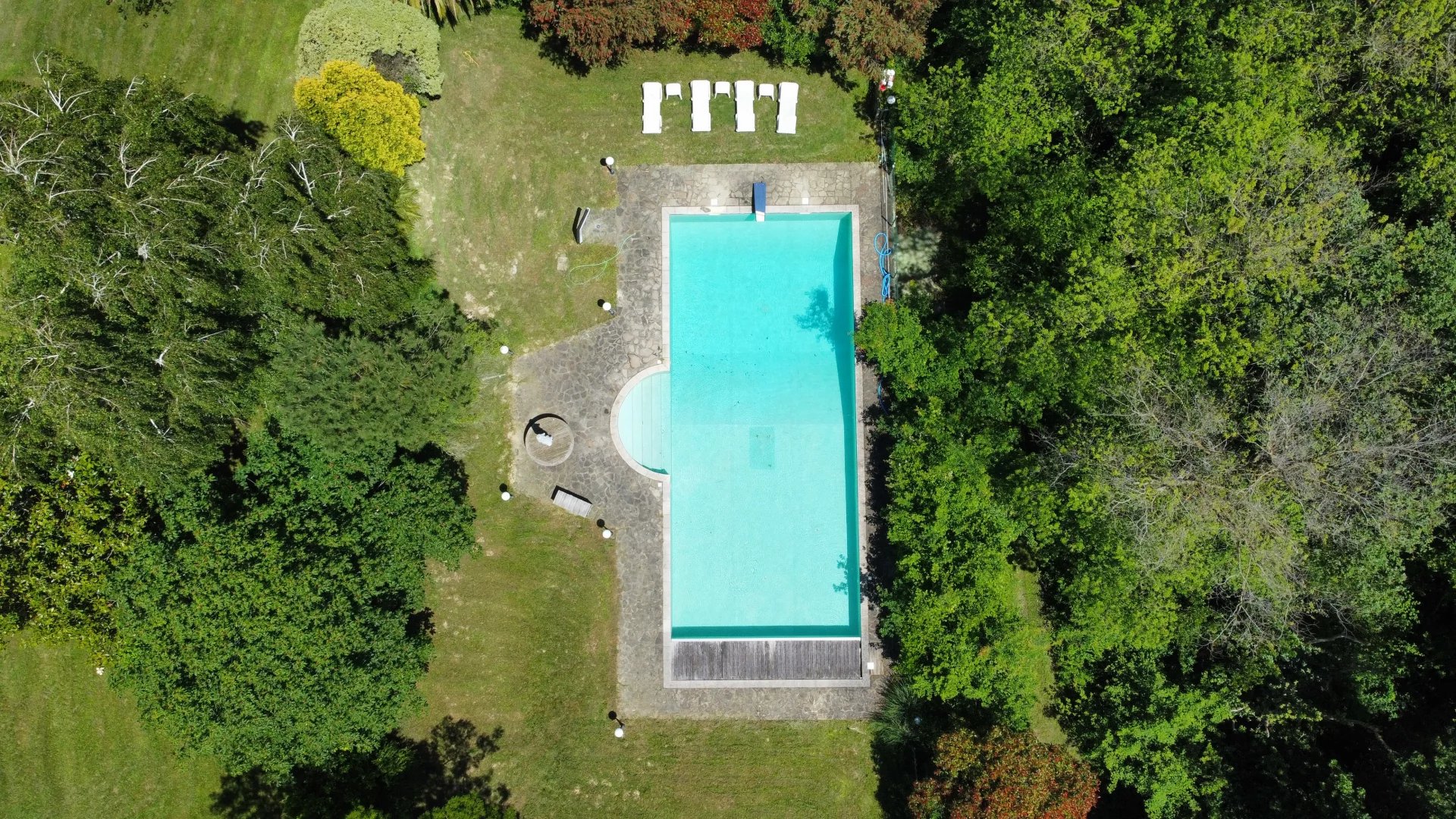 Le parc de plus de 2 hectares accueille de nombreuses variétés d'arbres et une piscine 16x8m.